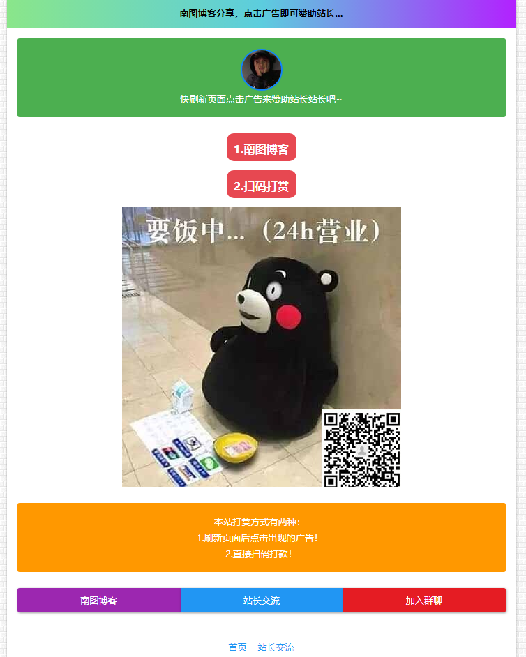 点击广告打赏,直接扫码打赏!只需上传源码解压带网站该目录即可!