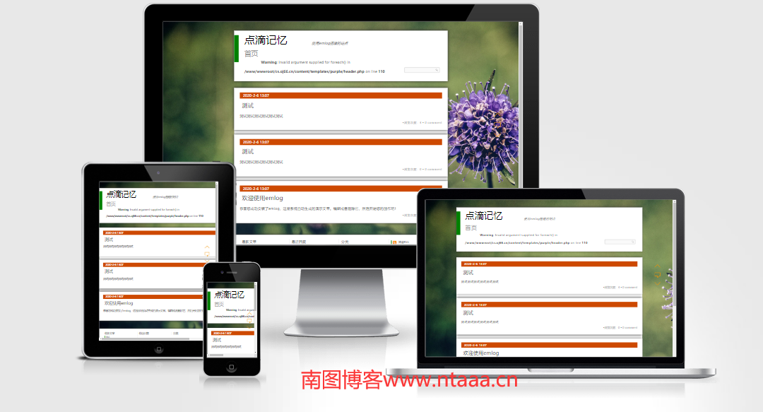 Purple主题模板采用居中窄屏设计风格,使用清新的风景作为网站背景,自带返回顶部和返回底部以及评论按钮,并将侧边栏上的功能设计在了底部。该模板整体风格非常的清新,并在底部预设有管理登录和登录退出等功能