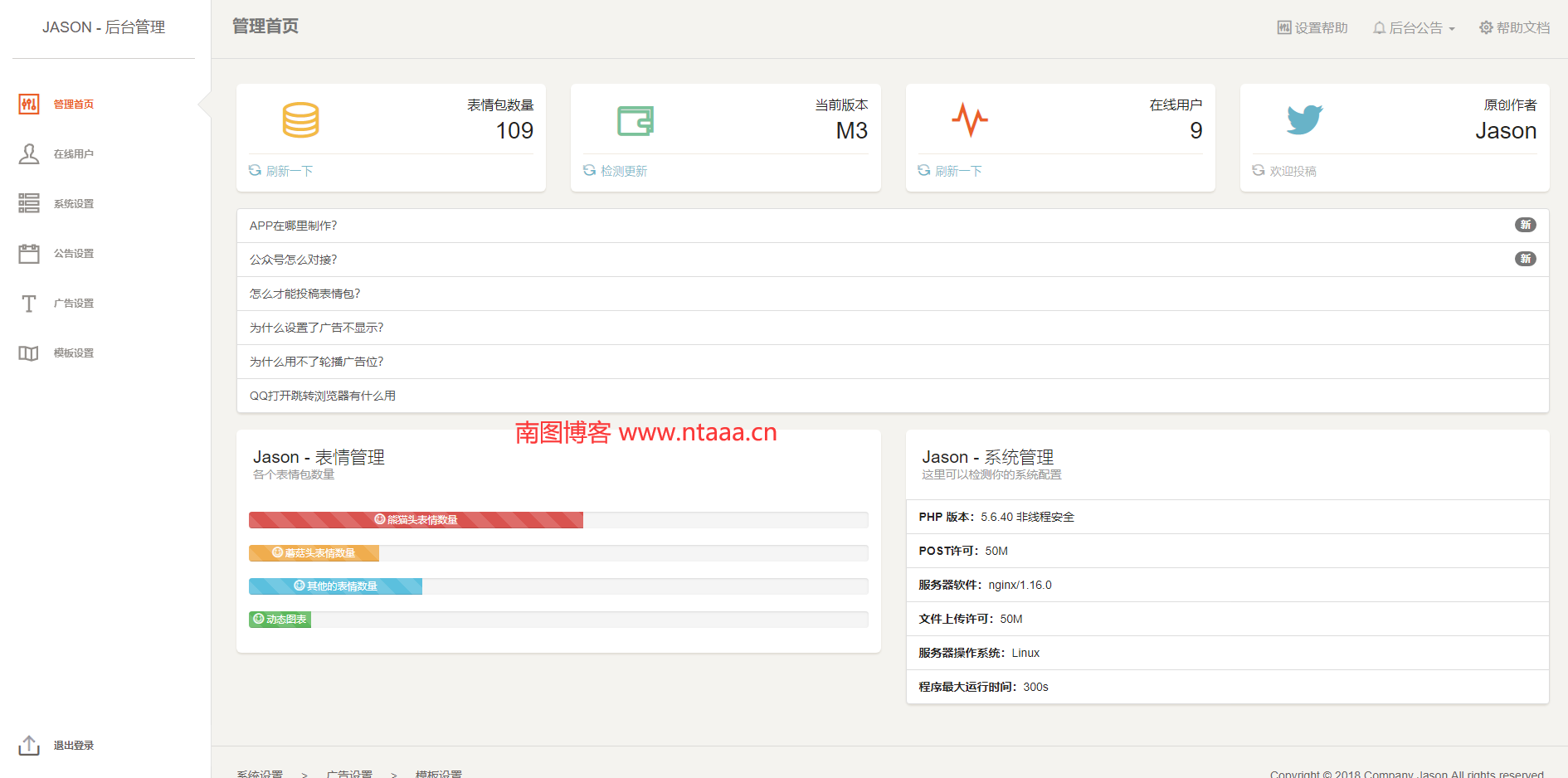 简介本表情包制作系统源码是公益源码,请勿用于商用!源码两个首页模板可选,可添加广告位自适应程序南图博客分享。安装PHP5.6源码上传解压即可安装如果安装失败请删除 install/install.lock 文件多试几次! 截图