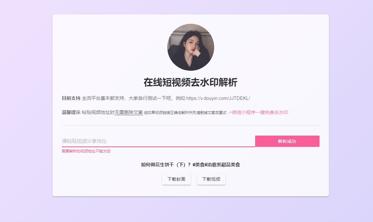 直接输入抖音或者快手的视频链接即可,如果你只是单纯想要解析去水印,