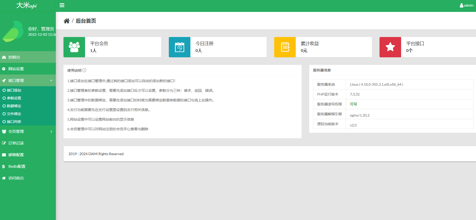账户 admin 密码 123456