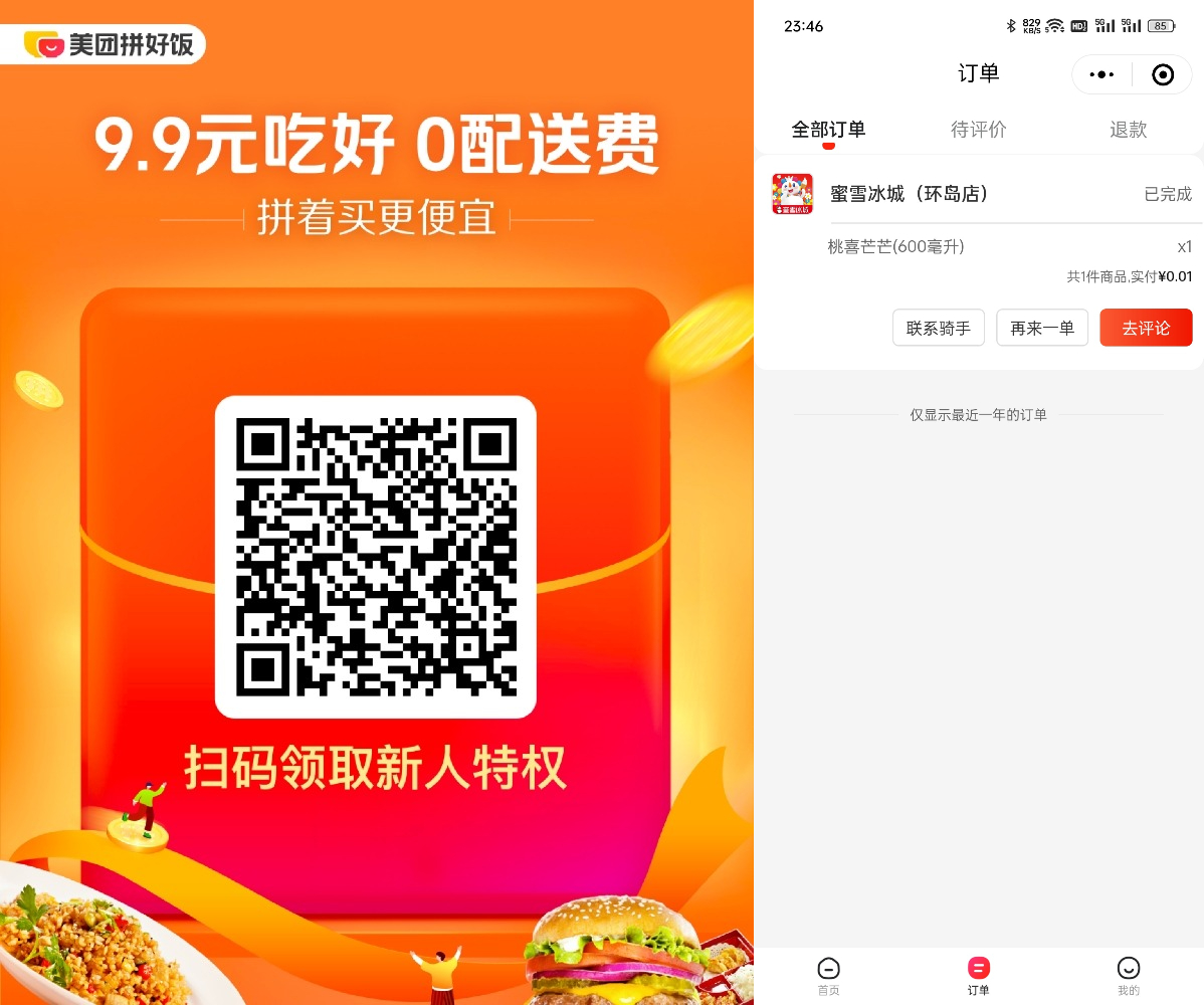 美团内测拼好饭0.01元吃饭 喝水 全国可用