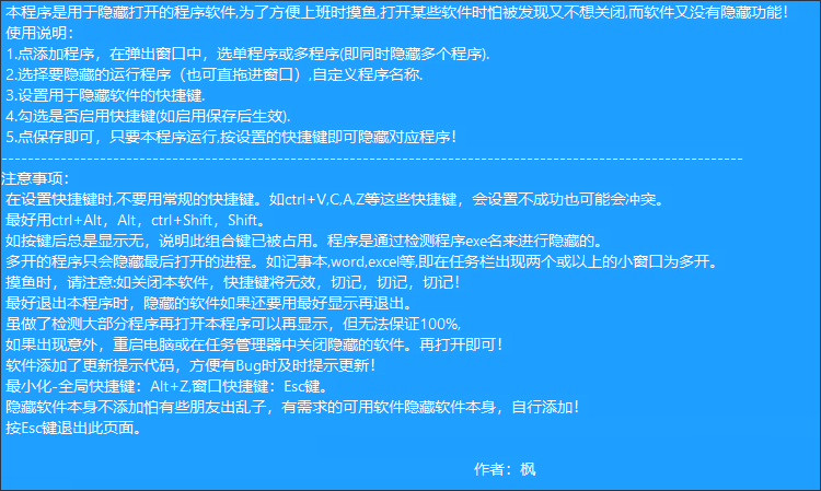 5.点保存即可,只要本程序运行,按设置的快捷键即可隐藏对应程序!