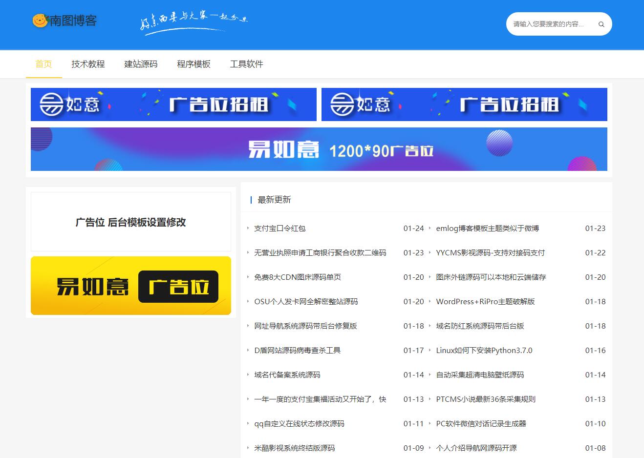 模板介绍这个模板是高仿小刀娱乐网的模板,这个主题模板在很多资源网都是收费下载的,今天我免费公益发出来谁用谁下。该主题使用的是Emlog博客系统。这套模板可以说是简约大气上档次,广告位你想加多少就可以加多少。主题截图